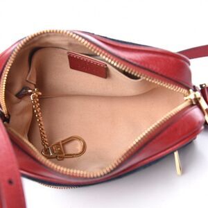 Great little bag from Gucci! This crossbody bag is crafted of navy blue suede with red leather trim. The bag features an adjustable red leather shoulder strap and polished gold hardware. The top zipper opens to a beige suede interior with a patch pocket and room for all of your daily essentials with the sophisticated style!