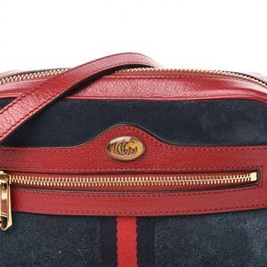 Gucci Suede Calfskin Web Mini Ophidia Shoulder Bag Blue Red
