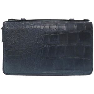 Gucci Travel Case Crocodile Document Case Long Wallet Navy Blue