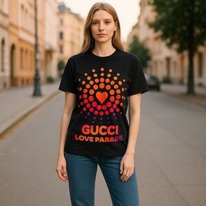 Gucci Unisex Black Tee with Red Accent