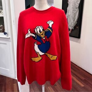 Brand Name] GUCCI x Disney [Product Name] Donald Knit Sweater [Material] 100 Percent Premium Natural Fiber [Color] Red [Size] Notation size XL Length 65cm Width 53cm Sleeve Length 65cm Shoulder Width 45cm