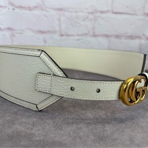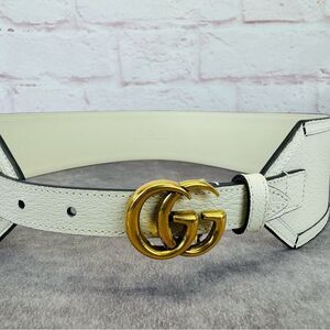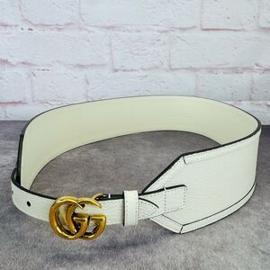 Authentic Gucci Marmont White Calfskin Leather Wide Belt Iconic GG Buckle 699752 90/36