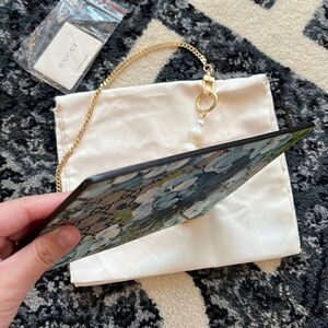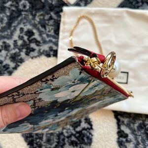 100% authentic Gucci blooms blue GG coated canvas leather clutch bag. customized the pearl short chain strap which is Gorgeous!