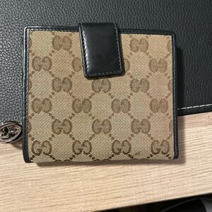 Used. Authentic Gucci wallet. Comes from smoke free home. Canvas with dark leather trim. Some scratches on interior leather. Good overall. Silvertone hardware.
