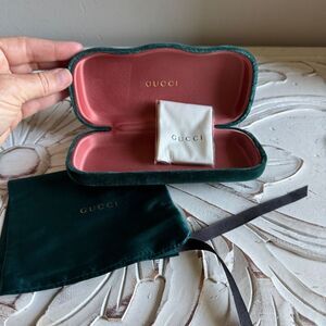 Gucci green velvet glasses case with cleaning cloth and dust bag