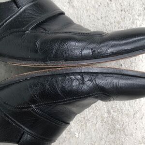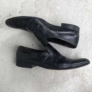 Vintage Gucci loafers that are not perfect so please look at the pictures they were resold with leather soles and have crackling on the side which I showed him pictures. Left Shoe has an indentation which I believe is Shoe man should be able to take out.