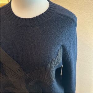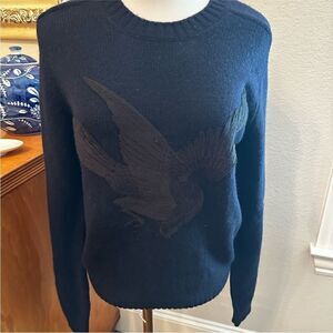 This is a wool men's sweater in a wool blend. It has an appliqué bird on the front. This was purchased at a Nordstrom last chance so does not have the interior neck tag but does have side ones. There is an area on the left back seam that was stitched. Please see the picture and will price accordingly.