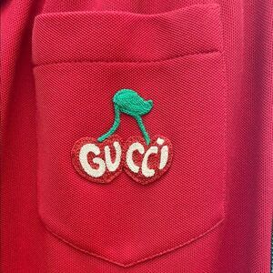 Women’s xxs Gucci red sweat pants. Features Gucci logo cherries on pocket. Comfortable and trendy design.