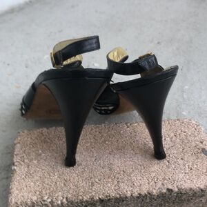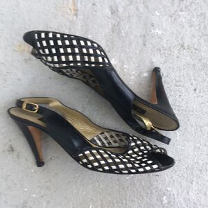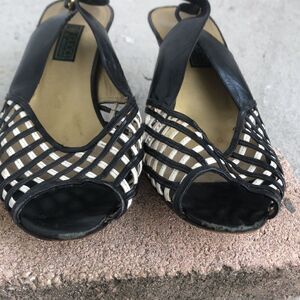 Super cute, black and white woven sling box, but please look at the pictures. They are not perfect. Heel height is 3.5 inches