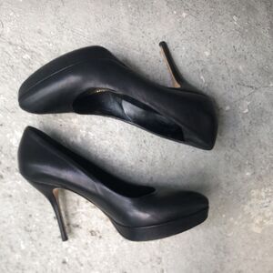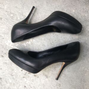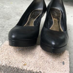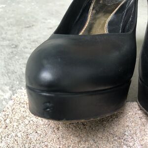 For soft black matter but please look at the pictures. Left Tow has a neck and the back of the left heel also has an M. Platform height is half an inch heel height is 4 inches.