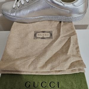 Gucciunisex Argento Nappa Silk Leather Sneaker in silver used once in great condition includes dust bags