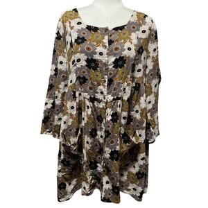 lagenlook, artsy clothing, Scandinavian style, boho floral tunic, crinkle cotton dress, minimalist boho, artsy tunic, cottagecore floral, earth tone dress, comfy cotton dress, oversized tunic, slow fashion, sustainable fashion