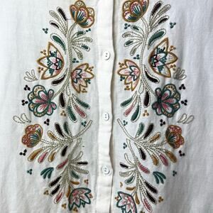 Color: White with multicolor floral embroidery