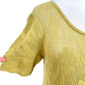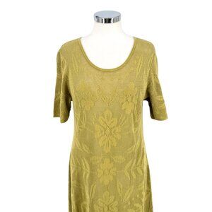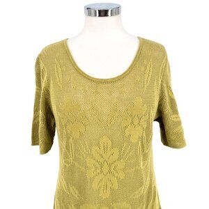 Gudrun Sjödén Open Knit Floral Dress Green Short Sleeve Scoop Neck Size Medium
