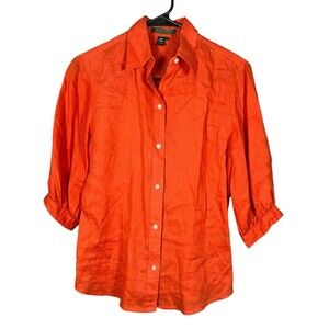 Size L • 100% Linen • Blue & Brown Aztec Print