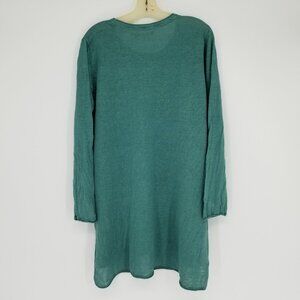 This is a beautiful organic linen pullover, sweater with a relaxed fit that can be worn as part of a Lagenlook style or incorporated into normcore, street style, coastal, quiet luxury, cabincore, minimalism, eclectic grandpa and more. It is a quality light linen layer that isn't itchy - and is a perfect layering piece in the colder months and worn alone when warmer. This is Gudrun Sjoden lovely shade called artemisia which pairs well with warm and cool colors - something like a cross between a jade green and light teal. It is in absolutely pristine condition and only worn once. As I have many artemisia pieces, I thought a fellow Gudrun Sjoden fan would enjoy finding this little gem and help me downsize my wardrobe.
