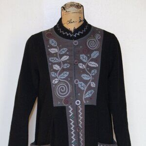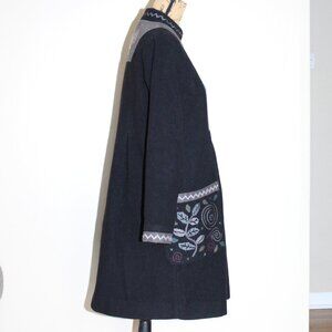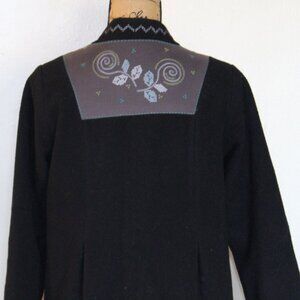 Gudrun Sjoden Black Felted Wool Embroidered Button Up "Berlin" Coat Women's S