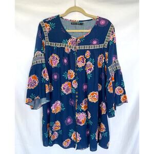 Gudrun Sjoden Blue Orange Pink Floral Tunic, Medium