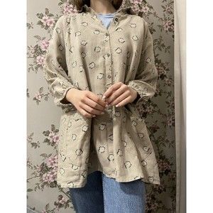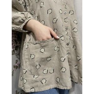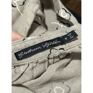 Gudrun Sjoden Boho Women’s Floral Linen Blouse Top Buttons Shirt Size M Over
