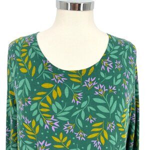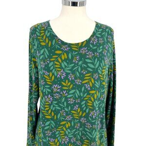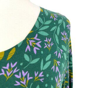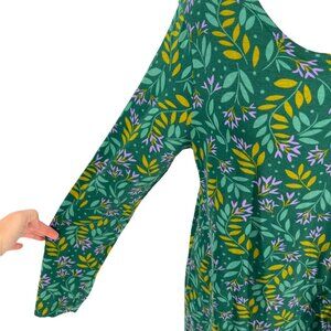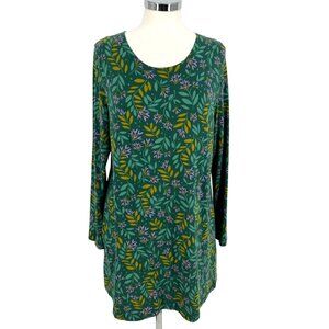 Gudrun Sjoden Floral Long Sleeve Dress Pockets Green Purple Organic Size Large
