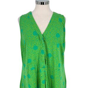 Gudrun Sjoden Green Patterned Sleeveless Dress Size XL Organic Cotton Size XL