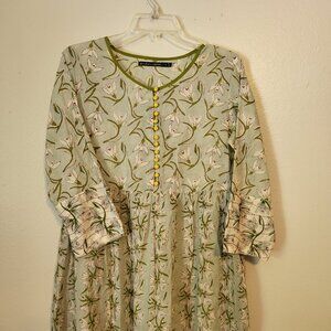 Gudrun Sjoden Green and Yellow Floral Midi Dress