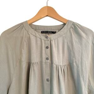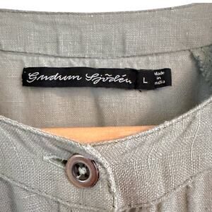 Gudrun Sjoden Linen Smock Top Sz Large Sage Green Pockets SPOTS Lagen Artsy