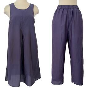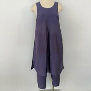 Gudrun Sjoden Matching Set Tunic Top and Cropped Pants Purple Silk Cotton S