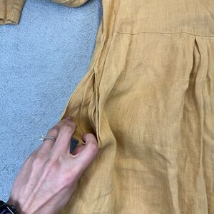 Linen midi dress with a relaxed fit. Features a square neckline and three-quarter sleeves and pockets