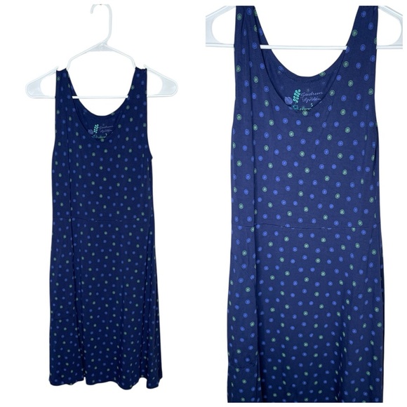 Gudrun Sjoden Navy Polka Dot Sleeveless 100% Modal Dress Size Small One Pocket.