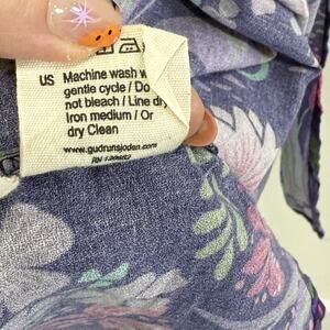 Gudrun Sjoden Purple Iris True Wrap Dress Midi Length M Pockets Organic Cotton bohemian hippie casual lagenlook flower power