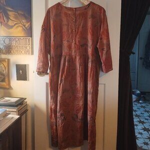 Gudrun Sjoden Simply Roses midi dress in a size M from Winter 2019 collection. 100% cotton voile, oversized dress with 3/4 sleeves and button up back. Can be worn layered (as shown on catalog model) or by itself. In EUC, smoke-free home.