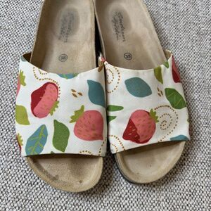 Gudrun Sjoden Strawberry Digital Print Fabric Sandals Size 38