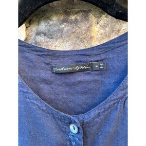 Gudrun Sjoden Tunic Top Organic Cotton Navy Medium Pockets Embroidered Button Up