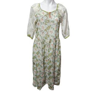 Gudrun sjodren boho midi dress floral lagenlook cottage pockets cotton small