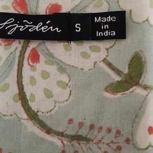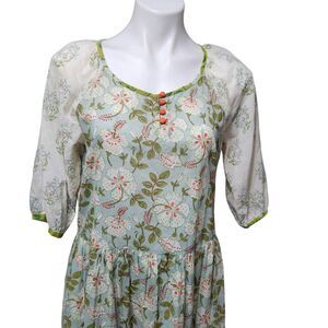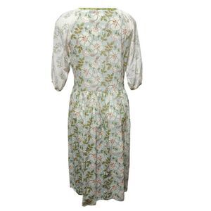 Gudrun Sjodren bohemian organic cotton floral dress. Half sleeve, midi length, pockets. Semi sheer.