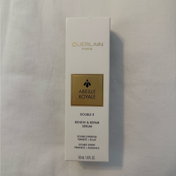 Indulge in the opulence of Guerlain's skincare serum, elegantly presented in a white and gold design. This luxurious serum combines the best of serum and face oil to enhance your skin's radiance and firmness. Elevate your beauty routine with this premium skincare essential.