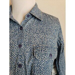 Guess 1981 Denim Top Womens XS Blue Polka Dot Shirt 100% Cotton Chambray Long