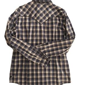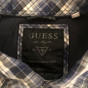 Guess 1981 Los Angeles Western Plaid Shirt Sz. L Pearl Snap Blue Chest Pockets