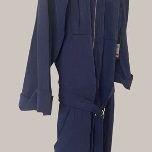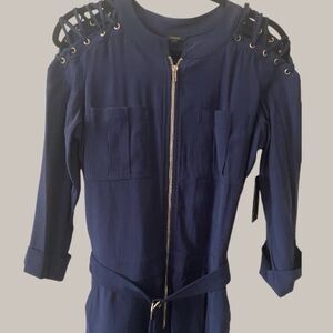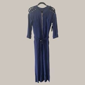 Guess 2016 Mathilde Military Jumpsuit Straight Leg Women’s Size Small front Pockets, front gold zipper with 3/4 sleeves, adjustable belt and in Evening Navy NWT