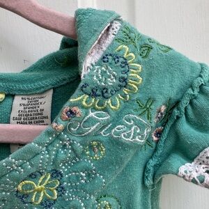 Guess 3T Girls Green Embroidered Short Sleeve Hoodie Sweatshirt with Lace Trim