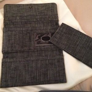 💓Guess black/grey denim wallet, pre loved, in great condition, 10 slots for cards and 5 slots for receipts