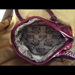 Deep red handbag, new condition, braided strap, side zipper