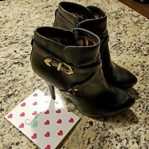 Authentic Guess booties in size 8.5. Very sexy with cute gold buckles and cheetah print interior.