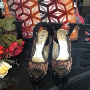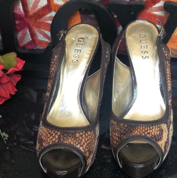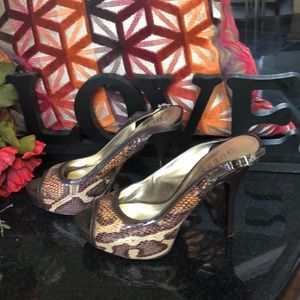 🌺 Pre-loved snakeskin Guess 5 inch heels with strap