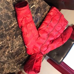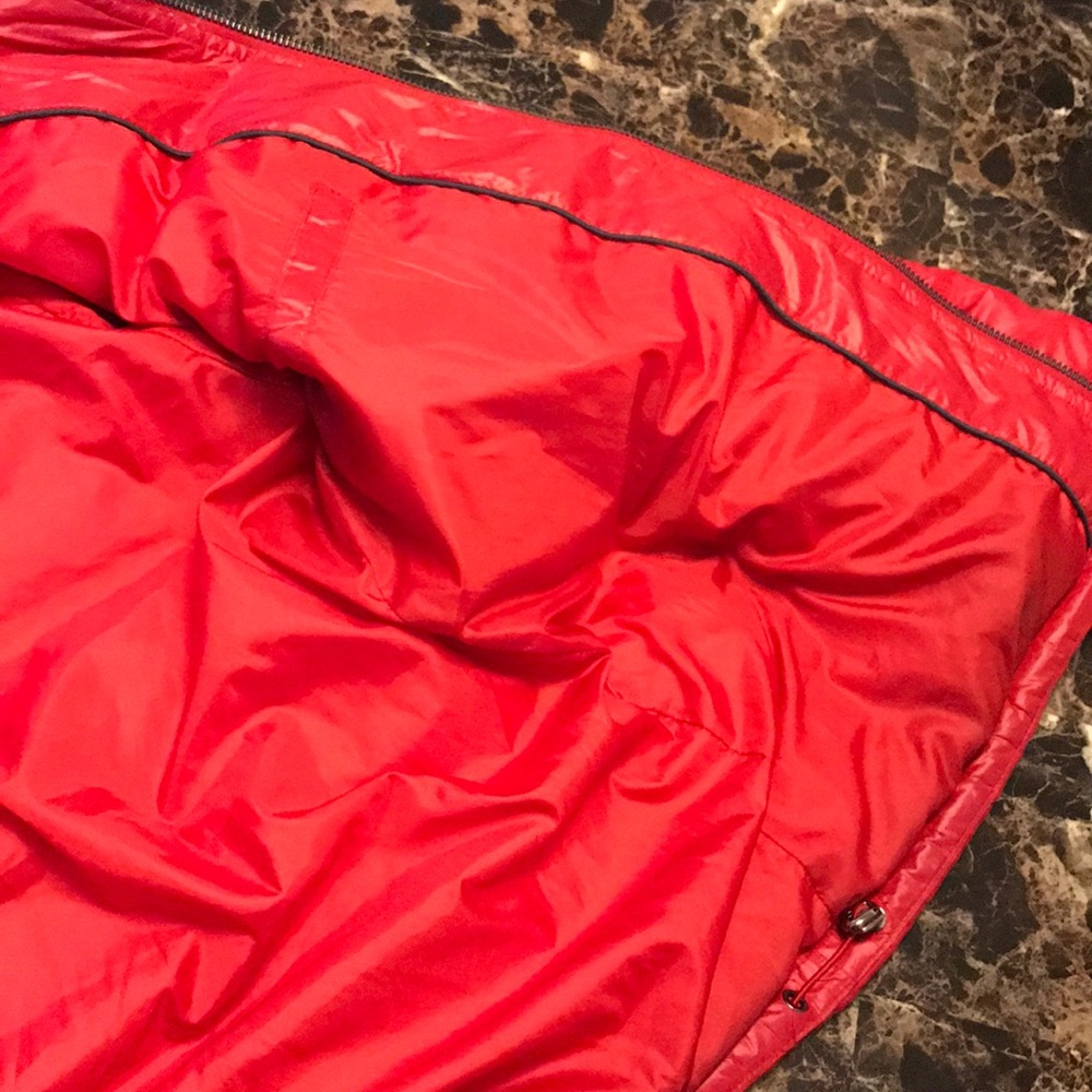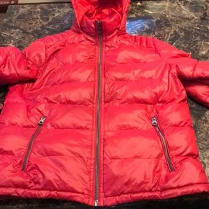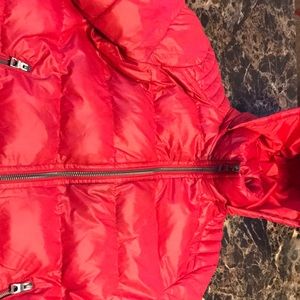 Red classic jacket , with hood that can be removed