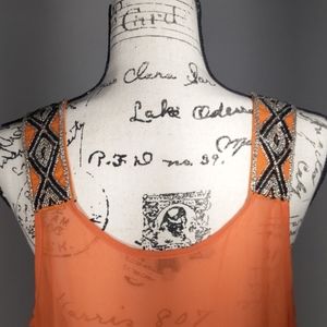 Scoop Neckline, Sleeveless Southwestern Style Beaded Straps with sheer back Top