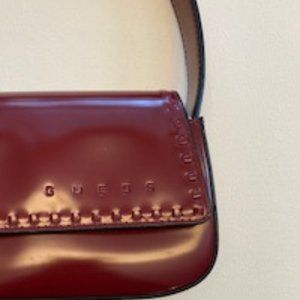 Guess wine sculptural bag, Mini, Patent Leather, Hardware is burnish silver, 1scratch on metal. Refer to picture above