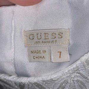 The brand is guess size 7 kids and color white and had gray color and the condition is perfect