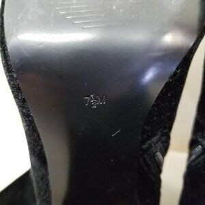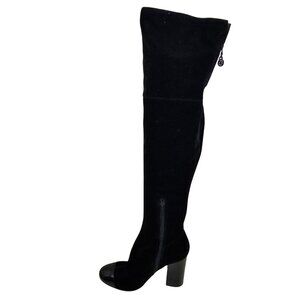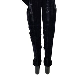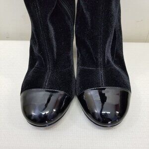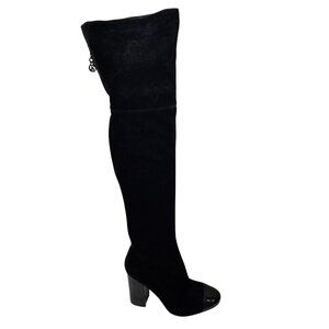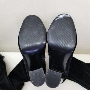 Guess 7.5 Black Velvet Thigh High Heeled Boots LOLO Patent Leather Cap Toe